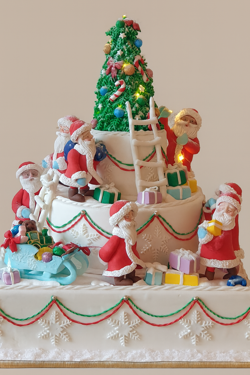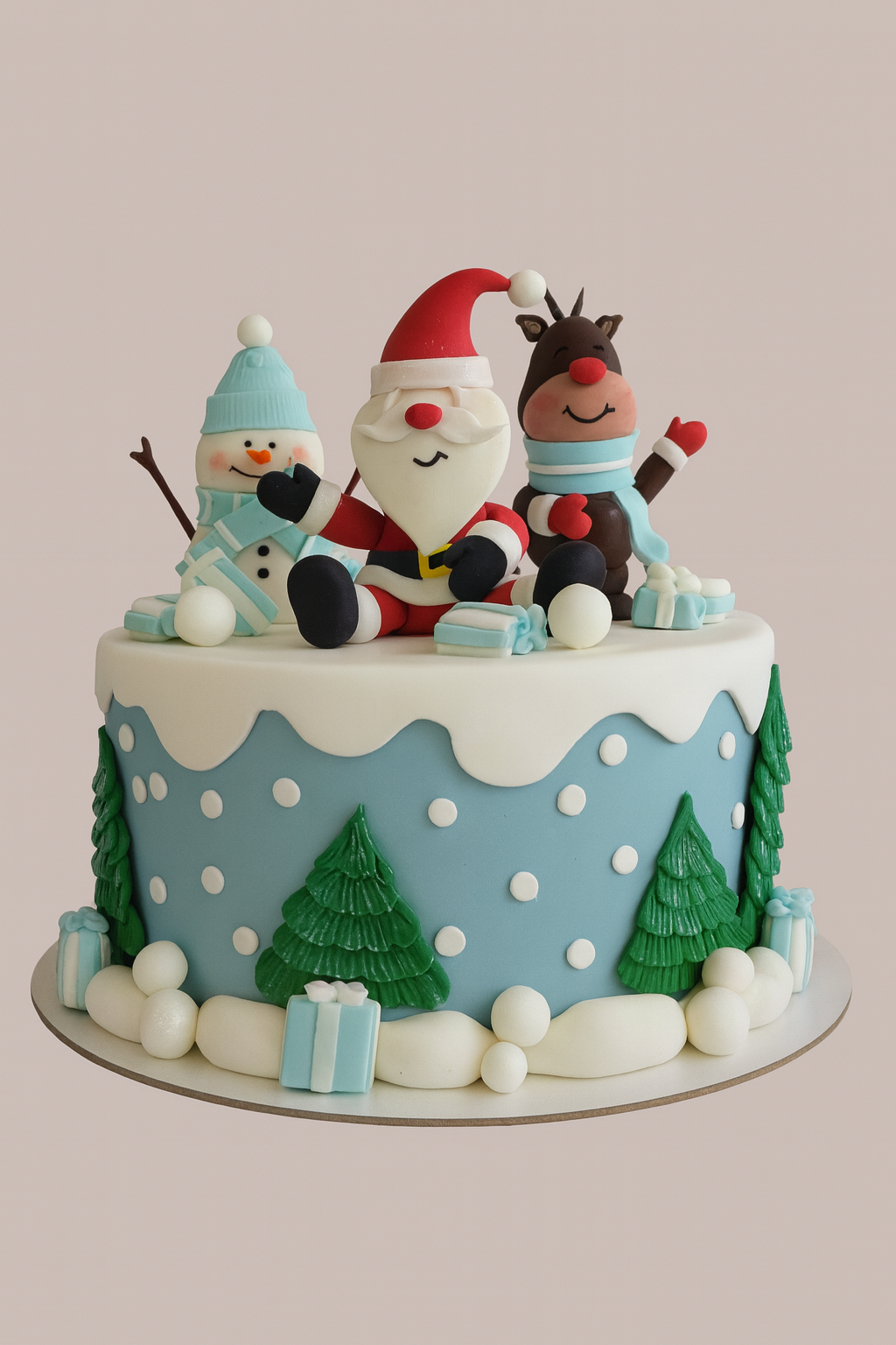Новогодний торт с кремом и фигурками из мастики
